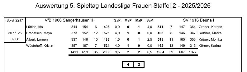 5.Spieltag 30.11 2025 (auswärts in Sangerhausen)