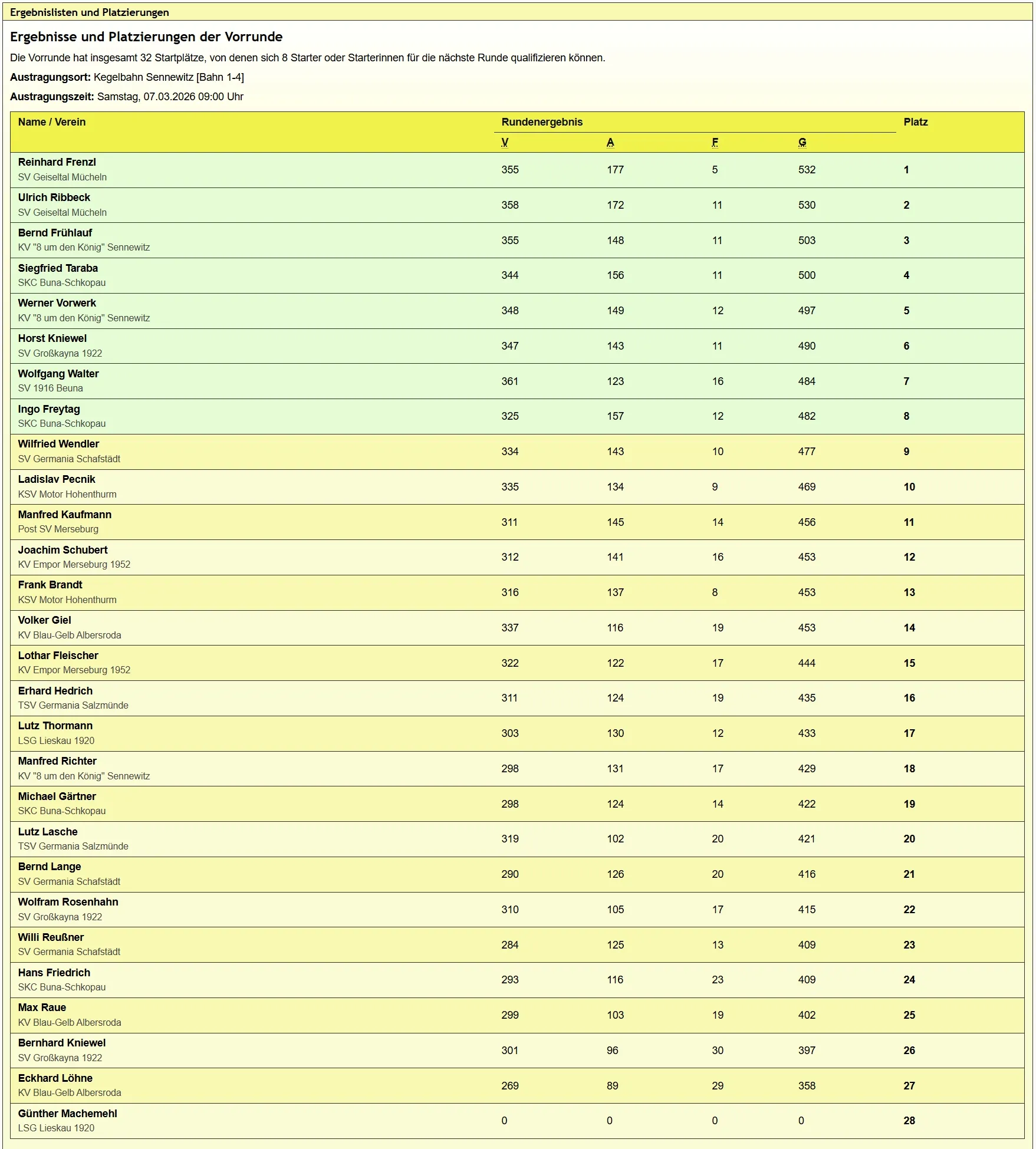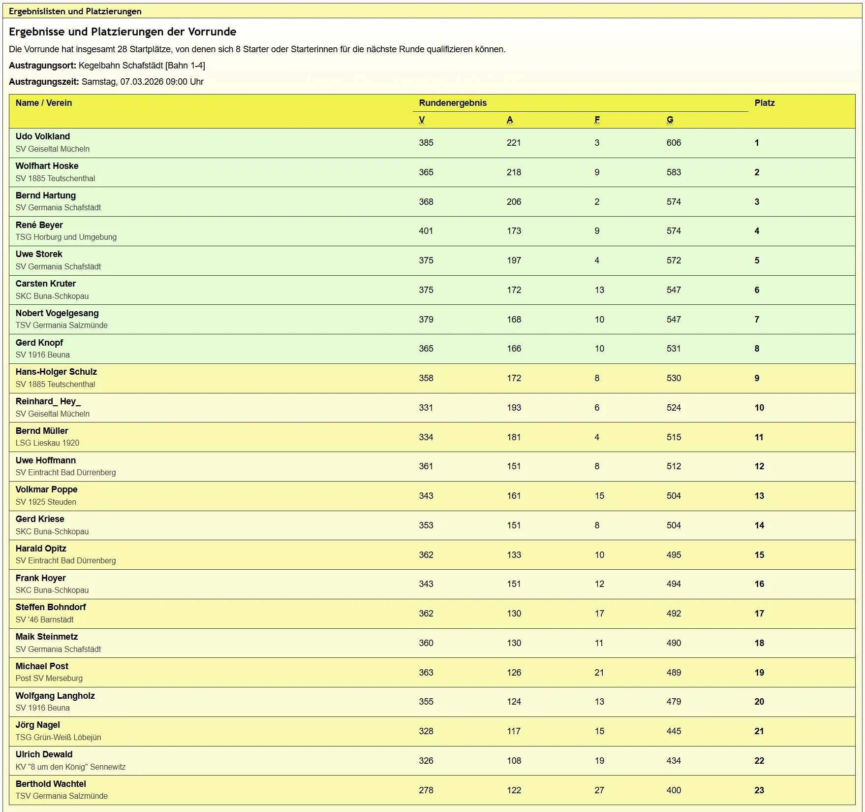 und unser Wolfgang Langholz mit 479 Holz :-) Platz 20 - beim nächsten Mal wird es besser